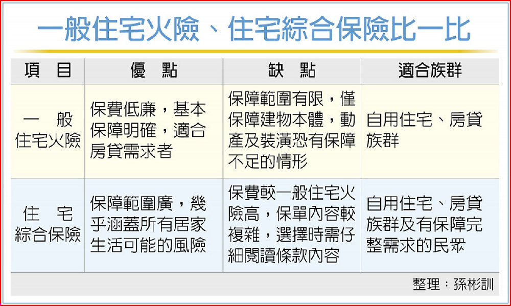 一般住宅火險、住宅綜合保險比一比