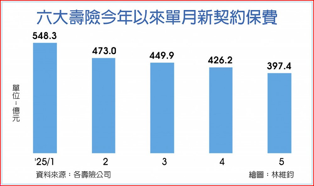 凱基人壽5月新契約保費成長力道強勁,其中利變型、投資型保單成長都超過2成,新契約保費50.8億元、年成長27.9%,推升前五月破300億元、年增達55.7%,預期6月利變及分紅保單仍為市場主流;台灣人壽5月新契約保費收入36億元、年衰近3成。