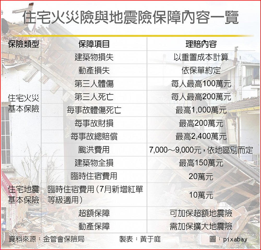 住宅火災險與地震險保障內容一覽