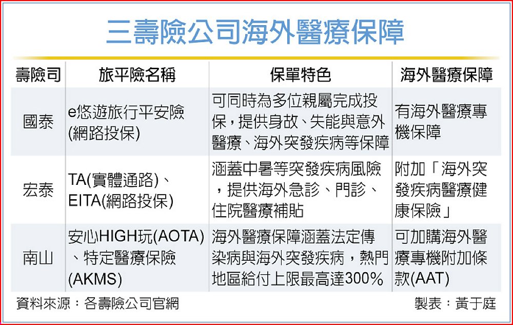 宏泰人壽指出,夏季長時間戶外活動容易引發中暑,若在海外就醫,不僅語言、醫療制度不同,就醫費用更可能讓人吃不消,建議民眾出國前可透過實體通路投保「宏泰人壽旅行平安保險(TA)」,或是在出發兩小時前透過網路平台投保「宏泰人壽e起遨遊旅行平安保險(EITA)」,並加保「海外突發疾病醫療健康保險」附約,涵蓋急診、門診、住院等醫療費用,可有效補貼海外突發疾病帶來的經濟負擔,但該保障不包含慢性病等非突發疾病,保戶應詳閱保單條款。