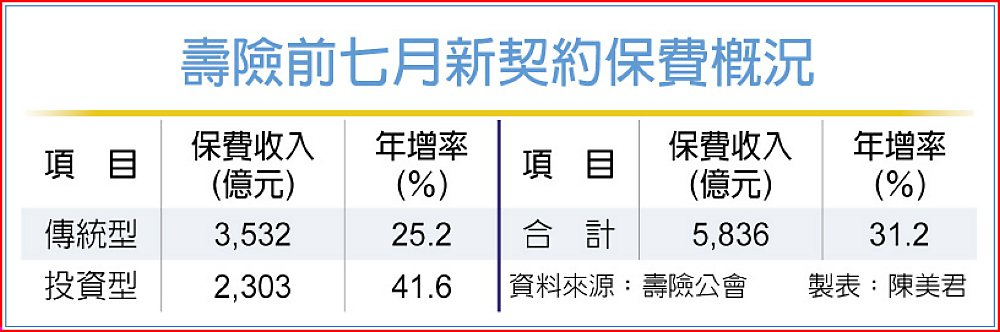 壽險前七月新契約保費概況