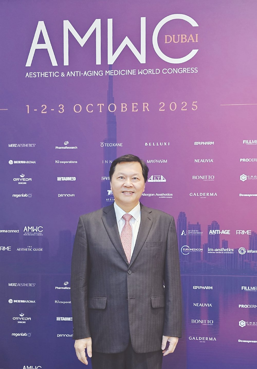 藝群醫學美容集團董事長王正坤醫師受邀世界美容醫學大會AMWC。圖/藝群提供