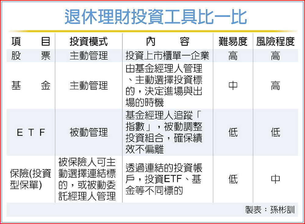 退休理財投資工具比一比