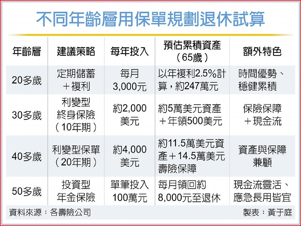 不同年齡層用保單規劃退休試算