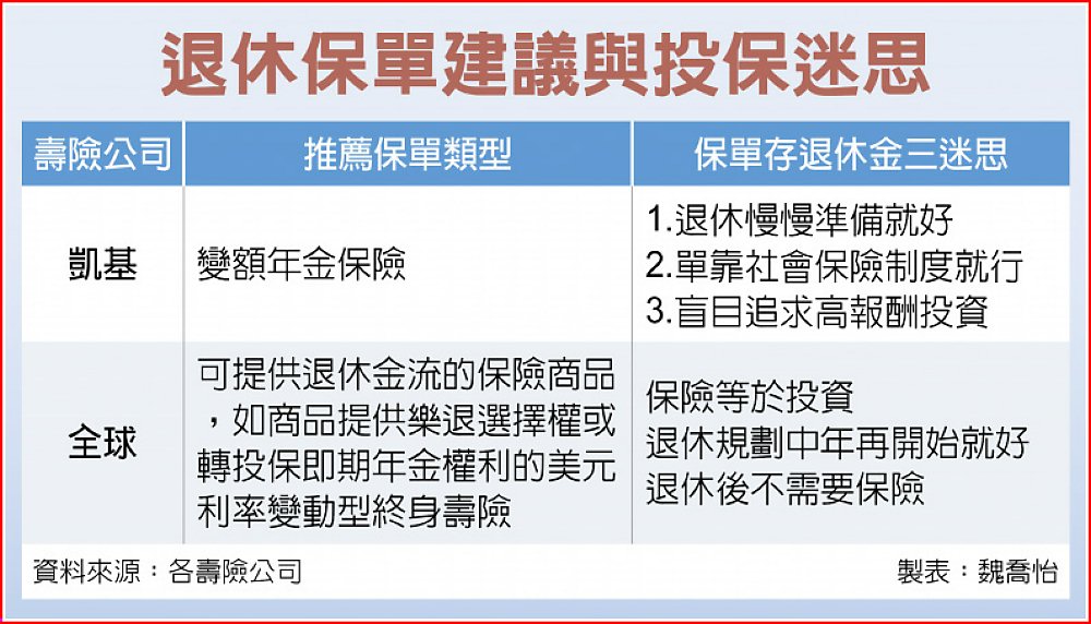 凱基人壽提醒,民眾準備退休金時避免以下迷思,一是「退休慢慢準備就好」,事實上退休規劃越早開始並持之以恆規劃,時間的複利效果越明顯;二是「單靠社會保險制度就行」,社會保險未來可能隨人口結構與政策改變而調整,未必能滿足民眾屆時退休所需,另外也須留意通膨風險,才能避免保障被侵蝕;三是「盲目追求高報酬投資」,未做好分散風險與資產配置,可能容易陷入高報酬的陷阱,一旦市場短期波動造成重大虧損。